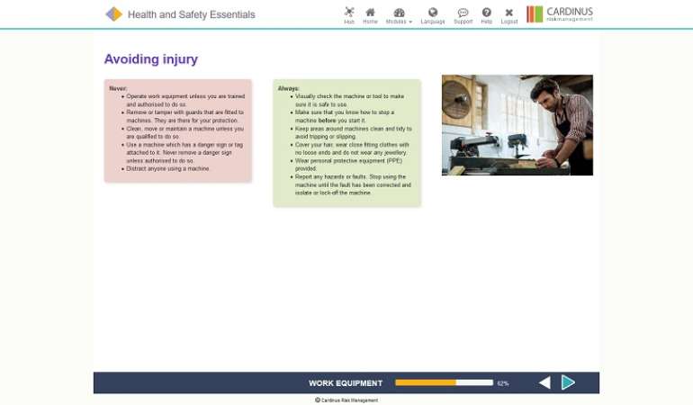 The Health & Safety Essentials E-learning course can help you deliver both initial induction training as well as refresher courses for your people quickly and efficiently, giving them the flexibility to learn at their own pace and when convenient to them.